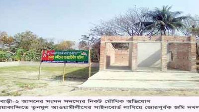 বালিয়াকান্দিতে তৃনমূল আওয়ামীলীগের সাইনবোর্ড লাগিয়ে সংখ্যালঘু পরিবারের জমি দখল