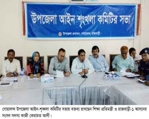 গোয়ালন্দ উপজেলা নির্বাহী কর্মকর্তা মো. আবু নাসার উদ্দিনের সভাপতিত্বে সভায় বক্তব্য রাখেন, উপজেলা পরিষদের চেয়ারম্যান এবিএম নুরুল ইসলাম, গোয়ালন্দ ঘাট থানার ওসি মীর্জা আবুল কালাম আজাদ, উপজেলা মহিলা ভাইস চেয়ারম্যান নার্গিস পারভীন, উপজেলা আওয়ামীলীগের সভাপতি ও জেলা পরিষদ সদস্য নুরুজ্জামান মিয়া, সাধারন সম্পাদক ও দৌলতদিয়া ইউপি চেয়ারম্যান নুরুল ইসলাম মন্ডল, ছোটভাকলা ইউপি চেয়ারম্যান আমজাদ হোসেন, গোয়ালন্দ পৗরসভার প্যানেল মেয়র কোমল কুমার সাহা প্রমূখ।