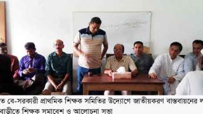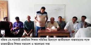 বঞ্চিত বে-সরকারী প্রাথমিক শিক্ষক সমিতির উদ্যোগে জাতীয়করণ বাস্তবায়নের লক্ষে রাজবাড়ীতে শিক্ষক সমাবেশ ও আলোচনা সভা