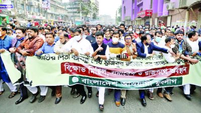 বঙ্গবন্ধুর ভাস্কর্য ভাঙা ও অবমাননার সঙ্গে জড়িতদের গ্রেফতারের দাবিতে গতকাল বেলা ১১টা থেকে বিক্ষোভ মিছিল করে ছাত্রলীগ। বেলা ২টায় বিশ্ববিদ্যালয়ের রাজু ভাস্কর্যের পাদদেশে থেকে চলে যাওয়ার পর সেখানে ২১ নম্বর ওয়ার্ড কাউন্সিলরের নেতৃত্বে আরেকটি বিক্ষোভ মিছিল হয়। ঐ সমাবেশ শেষে বিকেল ৪টায় অপরাজেয় বাংলা নামের একটি সংগঠন ফের সমাবেশ করে রাজু ভাস্কর্যের পাদদেশে। এভাবেই গতকাল দিনভর ঢাকা বিশ্ববিদ্যালয় এলাকা উত্তাল ছিল বঙ্গবন্ধুর ভাস্কর্য অবমাননার প্রতিবাদে।