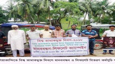 বালিয়াকান্দিতে বিশ্ব তামাকমুক্ত দিবসে মানববন্ধন ও লিফলেট বিতরণ কর্মসুচি পালিত