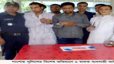 পাংশা ॥ রাজবাড়ীর পাংশা থানা পুলিশ বিশেষ অভিযান চালিয়ে বৃহস্পতিবার রাত সাড়ে ১১টায় ২০৫ পিস ইয়াবাসহ ২ ব্যবসায়ীকে আটক করেছে। আটককৃত ইয়াবা ব্যবসায়ীরা পাংশা পৌর শহরের সাবেক নারায়নপুর গ্রামের নজরুল কাজীর ছেলে রবিউল ইসলাম (বাবু) ও উপজেলার যশাই ইউপির যশাই গ্রামের রওশন শেখের ছেলে লিটন হোসেন (টেটন)। থানা সূত্র জানায়, বৃহস্পতিবার রাতে পাংশা মডেল থানার অফিসার ইনচার্জ মোঃ আহ্সান উল্লাহ’র নেতৃত্বে এস,আই শাহিন মোল্যা, এস,আই সেকেন্দোর আলী, এ,এস,আই আরিফুল ইসলাম, এ,এস,আই মুকুল মোল্লা সহ সঙ্গীয় পুলিশ দল পাংশা সরকারি কলেজ এলাকায় অভিযান চালিয়ে তাদেরকে আটক করে। এসময় মাদক ব্যবসায়ী বাবুর নিকট থেকে ১৯০ পিস ও টেটনের নিকট থেকে ১৫ পিস ইয়াবা ট্যাবলেট উদ্ধার করে পুলিশ। এ ঘটনায় পাংশা থানায় মাদক দ্রব্য নিয়ন্ত্রণ আইনে মামলা হয়েছে। মামলা নং-১, তারিখ: ০১/০৬/২০১৮খ্রি:। আটককৃতদের শুক্রবার জেলহাজতে প্রেরণ করা হয়েছে।