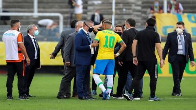 বিশ্বকাপ বাছাইয়ের ম্যাচ খেলতে নিজ দেশে আর্জেন্টিনার মুখোমুখি হয়েছে ব্রাজিল। কিন্তু খেলা শুরুর আনুমানিক পাঁচ মিনিটের মাথায় থামিয়ে দেওয়া হয় ম্যাচটি। ব্রাজিল কর্তৃপক্ষের অভিযোগ, ইংল্যান্ড থেকে আসা আর্জেন্টিনার চার খেলোয়াড় কোয়ারেন্টাইন না করেই খেলতে নেমেছেন।