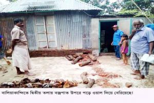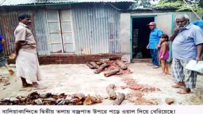 বালিয়াকান্দিতে ভবনের দ্বিতীয় তলায় বজ্রপাত-ওয়াল দিয়ে বিস্ফোরিত হয়ে বেরিয়েছে