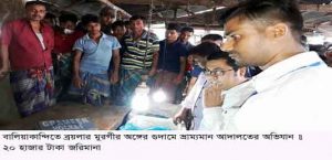 বালিয়াকান্দি ঃ দেশের বিভিন্ন স্থান থেকে ব্রয়লার মুরগীর মাথা, পা, কলিজা, গিলেসহ বিভিন্ন অঙ্গ সংগ্রহ করে গুদাম জাত করে হাট-বাজারে বিক্রি করে আসছিল একটি চক্র। রবিবার রাতে গোপন সংবাদের ভিত্তিতে রাজবাড়ীর বালিয়াকান্দি উপজেলা নির্বাহী অফিসার মোঃ মাসুম রেজা থানা পুলিশের সহযোগিতায় বহরপুর বাজারে অভিযান পরিচালনা করেন। অভিযানে গুদামজাতকৃত বিপুল পরিমান ব্রয়লার মুরগীর অঙ্গ উদ্ধার করে। ওই ব্যবসায়ীকে ভ্রাম্যমান আদালতের অভিযানে ২০ হাজার টাকা জরিমানা করাসহ ব্রয়লার মুরগীর অঙ্গ জব্দ করে স্থানীয় হাফেজিয়া মাদরাসা ও স্থানীয়দের মাঝে প্রদান করা হয়।