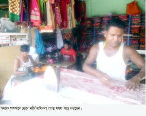 জানা গেছে, রমজান শুরুর পর থেকে দর্জি শ্রমিক ও টেইলার্স এর মালিকরা সার্বক্ষণিক অক্লান্ত পরিশ্রম করছে। প্রতিদিন ভোর হবার পর থেকে গভীর রাত্রি পর্যন্ত তারা পোশাক তৈরী করার জন্য খাওয়ার সময়টুকু পর্যন্ত পাচ্ছেনা। তাঁরা এ সময়কে পরিশ্রম একটু বেশী হলেও কাজ করতে তাঁদের থাকছে না কোন অনিহা। কারণ পরিশ্রমের পাশাপাশি শ্রমিকরা মজুরীও বেশী পাচ্ছেন। যাঁর কারণে মনে প্রাণে দর্জি শ্রমিক ও টেইলার্সের মালিকরা রাতদিন অক্লান্ত পরিশ্রম করছে। এমনকি দর্জি শ্রমিক ও টেইলার্সের মালিকরা তাঁদের পরিবারের সাথে এই রমজান মাসেও ইফতার করার সময় পর্যন্ত পাচ্ছেন না। ঈদের এখনও ১২ দিন বাঁকি থাকলেও দর্জি শ্রমিকদের শুরু হয়ে গেছে মহা ধুমধাম।