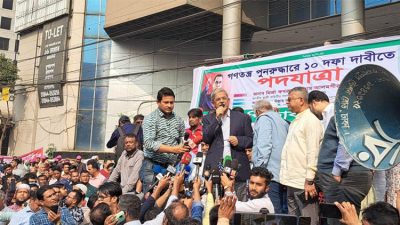 তিনি আরও বলেন, ‘আজকে কোনো বক্তব্য নেই। আজকে আমরা এক নতুন আন্দোলন শুরু করলাম। ঢাকা শহরে নিরব প্রতিবাদের মধ্য দিয়ে, নিরব যাত্রার মধ্য দিয়ে আমরা জনগণকে সঙ্গে নিয়ে এই ভয়াবহ, দানবীয় সরকারকে সরে যেতে বাধ্য করবো।’