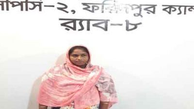 বিবরণঃ র্যাব-০৮, সিপিসি-০২ ফরিদপুর ক্যাম্প এর একটি আভিযানিক দল কোম্পানী অধিনায়ক অতিরিক্ত পুলিশ সুপার জনাব মোঃ রইছ উদ্দিন এর নেতৃত্বে অদ্য ১৯ জুন ২০১৮ইং তারিখ আনুুমানিক ১৩.৩০ ঘটিকার সময় ফরিদপুর জেলার মধুখালী থানাধীন বনমালিদিয়া গ্রামে অভিযান পরিচালনা করে ফরিদপুর জেলাধীন মধুখালী থানার মামলা নং-২২, তারিখঃ-২৩-০৫-২০১৮ইং, ধারা ১৯৯০ সালের মাদক দ্রব্য নিয়ন্ত্রেন আইন (সংশোধনী-২০০৪) ১৯(১) টেবিলের ৯(খ)/২৫ এর এজাহার নামীয় পলাতক আসামী মোছাঃ রাবেয়া বেগম(৪৫), পিতাঃ মৃত হেদায়েত মিয়া, স্বামীঃ মোঃ আলী আকবার সাং-বনমালিদিয়া, থানাঃ মধুখালী, জেলাঃ ফরিদপুরকে ১৫ পিস ইয়াবাসহ হাতে নাতে আটক করে। ঘটনার বিবরণে জানা যায় যে, ধৃত আসামী একজন পেশাদার মাদক ব্যবসায়ী এবং সে দীর্ঘ দিন যাবৎ ফরিদপুর জেলার মধুখালী থানা এলাকায় নিষিদ্ধ মাদক ইয়াবাসহ বিভিন্ন ধরনের অবৈধ মাদকদ্রব্য বিক্রয় কার্যক্রম চালিয়ে আসছে। ধৃত আসামীকে ফরিদপুর জেলার মধুখালী থানায় হস্তান্তর করা হয়।