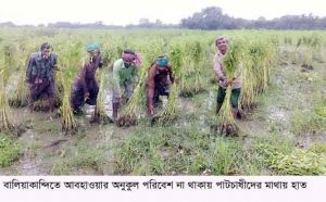 বালিয়াকান্দিতে আবহাওয়ার অনুকুল পরিবেশ না থাকায় পাটচাষীদের মাথায় হাত