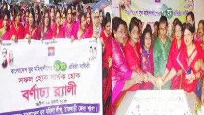 রাজবাড়ী ঃ বর্নাঢ্য আয়োজনের মধ্য দিয়ে যুব মহিলা লীগ রাজবাড়ী জেলা শাখার উদ্যোগে বাংলাদেশ যুব মহিলা লীগের ১৬ তম প্রতিষ্ঠা বার্ষিকী পালন করা হয়েছে।
