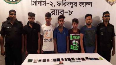 র‌্যাব-৮, সিপিসি-২ ফরিদপুর ক্যাম্প কর্তৃক ফরিদপুর জেলার ভাঙ্গা হতে সংঘবদ্ধ বিকাশ প্রতারক চক্রের ৫ সদস্য আটক