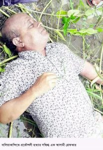 বালিয়াকান্দি  ঃ রাজবাড়ীর বালিয়াকান্দি উপজেলার নারুয়া ইউনিয়নের গঙ্গারামপুর মাঠের মধ্যে পাট ক্ষেত থেকে ৯ জুলাই বিকালে এক প্রকৌশলীর লাশ উদ্ধার করে পুলিশ। ওই প্রকৌশলীর নাম, আমির আলী (৬০)। তার পিতার নাম, মৃত মেছের আলী মল্লিক। বাড়ী উপজেলার নারুয়া ইউনিয়নের গঙ্গারামপুর গ্রামে। সে নারুয়া ইউনিয়ন ডাক্তার ইঞ্জিনিয়ার এসোসিয়েশনের উপদেষ্টা মন্ডলীর সদস্য ও বুয়েটের সাবেক প্রকৌশলী। বর্তমানে মাদারীপুরে ইঞ্জিনিয়ার ফার্মে কর্মরত ছিলেন। ওই মামলার সন্ধিগ্ধ এক আসামীকে পুলিশ গ্রেফতার করে ১০ জুলাই রাজবাড়ী আদালতে পাঠিয়েছে। আকবর আলীকে ৭দিনের রিমান্ডের আবেদন করেছে মামলার তদন্তকারী কর্মকর্তা এস,আই অঙ্কুর কুমার ভট্রাচার্য্য। মঙ্গলবার আদালত ২ দিনের পুলিশ রিমান্ড মঞ্জুর করেছে। বিকালে নিহতের বাড়ীর অদুরে পাট ক্ষেত থেকে তার ব্যবহৃত মোবাইল ফোন উদ্ধার করেছে পুলিশ।