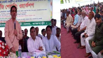 রাজবাড়ী ঃ বাচলে কৃষক বাচবে দেশ। তাই কৃষিতে সর্বক্ষেত্রে প্রযুক্তির ব্যবহার ও এর ফলাফল বিষয়ে পরামর্শ প্রদানের লক্ষ্যে রাজবাড়ী সদর উপজেলার পাঁচশত কৃষাণ-কৃষানীদের নিয়ে টেকনোলজি শেয়ারিং ওয়ার্কশপ অনুষ্ঠিত হয়েছে।রাজবাড়ী সদর উপজেলা কৃষি সম্প্রসারন অফিস কার্যালয় চত্ত্বরে ন্যাশনাল এগ্রিকালচারাল টেকনোলজি প্রোগ্রাম ফেইজ-২ প্রজেক্ট (এনএটিপি ২) এর আওতায় সিআইজি ও নন সিআইজি কৃষকদের নিয়ে  ওয়ার্কশপের আয়োজন করা হয় । কর্মশালায়  প্রধান অতিথি হিসেবে বক্তব্য রাখেন গনপ্রজাতন্ত্রী বাংলাদেশ সরকারের শিক্ষা প্রতিমন্ত্রী আলহাজ্ব কাজী কেরামত আলী। বিশেষ অতিথি হিসেবে  রাজবাড়ী সদর উপজেলা পরিষদের চেয়ারম্যান এ্যাডভোকেট এম এ খালেক, রাজবাড়ীর কৃষি সম্প্রসারন অধিদপ্তরের উপ-পরিচালক ফজলুর রহমান, কৃষি সম্প্রসারন অধিদপ্তর খামারবাড়ীর অতিরিক্ত উপ-পরিচালক অর্থ মোঃ রকিব উদ্দিন, রাজবাড়ী সদর উপজেলা নির্বাহী অফিসার মোঃ সাইদুজ্জামান খান, রাজবাড়ী সদর উপজেলা কৃষি অফিসার শেখ মোঃ বাহাউদ্দিন, রাজবাড়ী প্রেস ক্লাবের সভাপতি এ্যাডভোকেট খান মোঃ জহুরুল হক প্রমুখ বক্তব্য রাখেন।