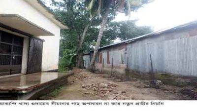 বালিয়াকান্দি ঃ দীর্ঘদিন ধরে প্রাচীর না থাকা, ভবন ও অফিস জরাজীর্ণ অবস্থায় কার্যক্রম করার পর রাজবাড়ী জেলার বালিয়াকান্দি উপজেলার নলিয়াগ্রাম খাদ্য গুদামের সীমানার গাছ অপসারন না করেই নতুন ভবন ও প্রাচীরের কাজ শুরু হয়েছে। পুরাতন প্রাচীর ঘেষে জন্ম নিয়ে বেড়ে ওঠা গাছ গুলো অপসারন না করে প্রাচীর নির্মানের ফলে একদিকে যেমন গাছের শিকড় কেটে দায়সারা ওয়াল (প্রাচীর) নির্মান করায় অল্প দিনেই প্রাচীর ক্ষতির সম্মুখিন হওয়ার আশঙ্কা আর শিকড় কাটা গাছগুলো ঝড়ে উপরে পড়ে ক্ষতির আশঙ্কা করছে স্থানীয়রা।