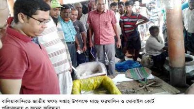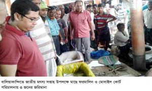 বালিয়াকান্দিতে জাতীয় মৎস্য সপ্তাহ উপলক্ষে মাছে ফরমালিন ও মোবাইল কোর্ট পরিচালনায় ৩ জনের জরিমানা