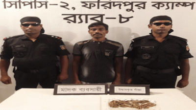 র‌্যাব-৮ এর অভিযানে ফরিদপুর জেলার কোতয়ালী থেকে গাঁজাসহ এক মাদক ব্যবসায়ী আটক