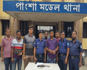 স্টাফ রিপোর্টার ঃ রাজবাড়ী পাংশা থানা পুলিশের অভিযানে অস্ত্র ও গুলি সহ ৮ মামলার আসামী মিল্টন সরদার কে গ্রেফতার করা হয়েছে । পাংশা মডেল থানার ওসি আহসানউল্লার নেতৃত্বে মিল্টন সরদার কে একটি দেশীয় তৈরী রিভোয়েল্ভার ও ৩ পিস কার্তুজ সহ গ্রেফতার করা হয়েছে। মিল্টন সরদার শৈলকূপা ধুদশর এলাকার জনাব আলী সরদারের ছেলে। মিল্টন সরদার বর্তমান । পাংশা মডেল থানা’র ওসি আহসান উল্লাহ জানান আসামী মিল্টন সরদারের বিরুধ্যে ৫টি ডাকাতি মামলা ২টি অস্ত্র ও ১টি মার্ডার মামলা রয়েছে। গোপন সংবাদের ভিত্ত্বিতে ১৮ই আগস্ট শনিবার ভোরে নাদুরীয়া ঘাট পাড় হবার সময় তাকে অস্ত্র ওগুলী সহ গ্রেফতার করা হয়।