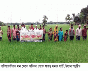 বালিয়াকান্দিতে ধান ক্ষেতে ক্ষতিকর পোকা মাকড় দমনে পার্চিং উৎসব অনুষ্ঠিত