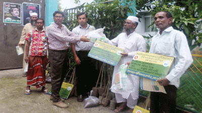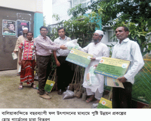 বালিয়াকান্দিতে বছরব্যাপী ফল উৎপাদনের মাধ্যমে পুষ্টি উন্নয়ন প্রকল্পের হোম গার্ডেনের চারা বিতরণ