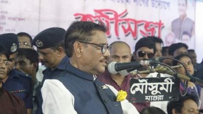 বলেন , বি এন পি ‘র এমন কোন উন্নয়ন নেই যা দিয়ে তারা জনগনের কাছে ভোট চাইবে । বি এন পি একটি ভুয়া দল তাদের জনগনের কাছে আর গ্রহনযোগ্যতা নাই । এবারের নির্বাচনের আগেই আপ্নারা শত ভাগ বিদ্যুৎ পাবেন। ২য় পদ্মা সেতু দৌলতদিয়া –পাটুরিয়া এ সরকারের হাতেই হবে । বংবন্ধু কন্যা শেখ হাসিনা দেশের উন্নয়নে সার্বিক কার্যক্রম চালিয়ে যাচ্ছে । শেখ হাসিনার হাতকে শক্তিশালী করার জন্য আপ্নারা আবারো নৌকায় ভোট দিয়ে উন্ননের ধারা অব্যাহত রাখবেন । সমাবেশে বীর মুক্তিযোদ্ধ্যা ,জেলা আওয়ামিলীগের স্বভাপতি জিল্লুল হাকিম এর স্বভাপতিত্বে বিশেষ অতিথী হিসেবে বক্তব্য রাখেন ব্যারিষ্টার মহিবুল হাসান নওফেল,মাননীয় সরকারের কারিগরি ও শিক্ষা প্রতিমন্ত্রী আলহাজ্ব কাজি কেরামত আলী এম্পি। জেলা আওয়ামিলীগের যুগ্ন-সাধারন সম্পাদক কাজী এরাদত আলী। জেলা পরিষদের চেয়ারম্যান মুক্তি যোদ্ধা ফকির আঃ জব্বার। জেলা আওয়ামিলীগের সহ-সভাপতি আকবর আলী মর্জি প্রমুখ । সমাবেশের শুরুতে সেতু মন্ত্রী ওবায়দুল কাদের কে ফুলেল শুভেচ্ছা জানান জেলা আওয়ামিলীগ এর অংগসংগঠনের নেতৃবৃন্দ । উল্লেখ্য এর আগে রাজবাড়ীর পাংশায় আহ্লাদীপুর-রাজবাড়ী-পাংশা-কুমারখালী-কুষ্টিয়া আঞ্চলিক মহাসড়ক (আর-৭১০) এর তালতলা হতে শিয়ালডাঙ্গী পর্যন্ত ৩৩.৩৯০ কি.মি. সড়কাংশ প্রশস্তকরণ ও পুন:নির্মাণ কাজের উদ্বোধন ও পাংশা উপজেলা আওয়ামীলীগ আয়োজিত এক জনসভায় প্রধান অতিথি হিসেবে থাকেন বাংলাদেশ আওয়ামীলীগের সাধারণ সম্পাদক এবং সড়ক পরিবহণ ও সেতুমন্ত্রী ওবায়দুল কাদের।
