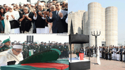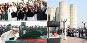 পরে প্রধানমন্ত্রী ও সংসদ নেতা শেখ হাসিনা তাঁর মন্ত্রিসভার সহকর্মীর কফিনে পুষ্পস্তবক অর্পণ করেন।