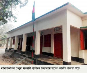 বালিয়াকান্দি ঃ রাজবাড়ীর বালিয়াকান্দি উপজেলার নারুয়া ইউনিয়নের দেলুয়া সরকারী প্রাথমিক বিদ্যালয়ের পুনরায় রাতেও জাতীয় পতাকা উড়ার অভিযোগ উঠে। ওই অভিযোগে রবিবার স্কুলের প্রধান শিক্ষক মোঃ মেহেরুজ্জামানকে শোকজ করেছে শিক্ষা কর্মকর্তা। আগামী ৩ কার্যদিবসের মধ্যে কেন তার বিরুদ্ধে শাস্তিমুলক ব্যবস্থা গ্রহন করা হবে না জানতে শোকজ নোটিশ পাঠান।