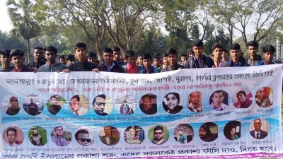 সম্প্রতি বছরগুলোতে বাংলাদেশে মুক্তমনা ব্লগারদের উপর হামলা ও হত্যার মত ঘটনা ঘটছে ক্রমাগত। ইতিমধ্যে খুন হয়েছেন অসংখ্য ব্লগার। এমন অবস্থায় গতকাল রবিবার সাভারে কতিপয় মুক্তমনা ব্লগারদের ছবি সম্বলিত ব্যানার নিয়ে তাদের ফাঁসি দাবি করে বিক্ষোভ মিছিল করেছেন হেফাজত ইসলাম বাংলাদেশ এর নেতাকর্মীরা।