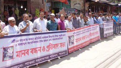 সাংবাদিক মোবারকের উপর হামলার প্রতিবাদে পাবনায় মানববন্ধন