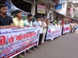 পাবনার গৃহবধু তানিয়া সহ দেশব্যাপী যৌন হয়রানী খুন ধর্ষন এর প্রতিবাদে মানব বন্ধন।